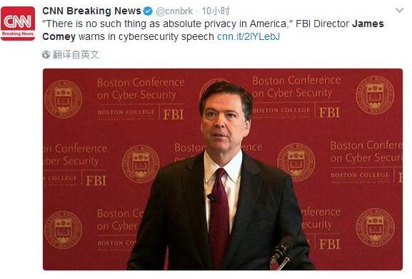 【相关报道】FBI局长:美国毫无绝对隐私可言