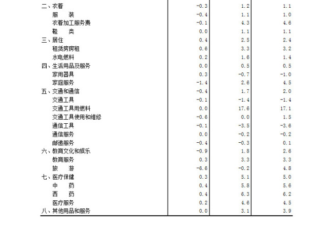 全國居民消費價格指數(CPI)涵蓋全國城鄉居民生活消費的食品煙酒、衣著、居住、生活用品及服務、交通和通信、教育文化和娛樂、醫療保健、其他用品和服務等8大類、262個基本分類的商品與服務價格。