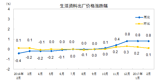 2017年2月份工業生產者出廠價格同比上漲7.8%