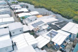 WWF獲大澳居民及本地合作團體的支持,於去年6月為大澳三所面向西南方的棚屋天台安裝太陽能光伏發電系統,並連接至電網。總安裝容量為6000瓦,年輸出總發電量達6000至7000度電,所生產的電力為居民提供了潔淨的能源選擇,包括為棚屋居民提供家居用電,以及供電予村內公共照明系統。受棚屋結構的承載力所限,本會將每個系統總重量控制於40公斤以下,並於去年10月成功通過超級颱風壓力測試。