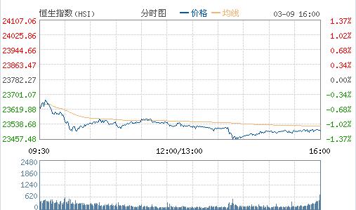 恒生分類指數截至收盤全部下跌,金融分類指數跌1.09%、公用事業分類指數跌1.09%、地產分類指數跌1.22%、工商業分類指數跌1.3%。