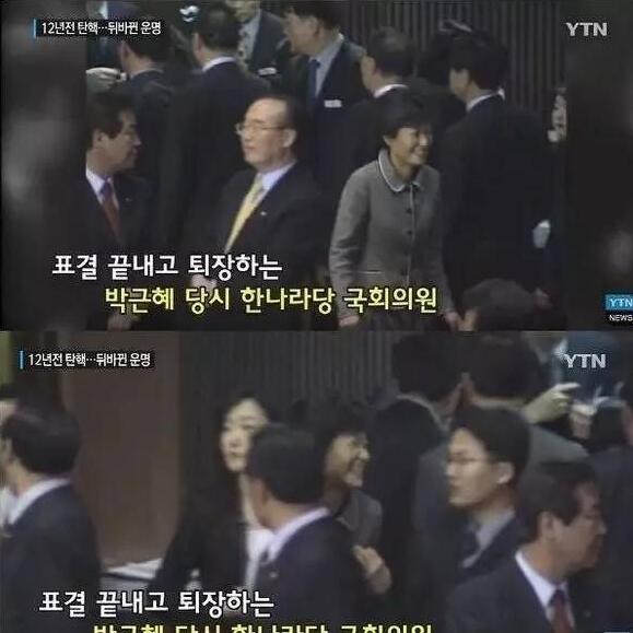 有意思的是,兩人還在2014年的國會上就盧武鉉彈劾案上有過間接交鋒。文在寅當時作為盧武鉉的辯護律師,極力阻止國會通過彈劾案;樸槿惠則發起彈劾的在野黨——大國家黨的干將之一,被媒體拍到投票后笑容滿面。