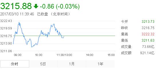 3月10日消息,滬深兩市股延續震蕩走勢,深指走勢略強于滬指,創業板表現稍差。截止早盤收盤,滬指報3215.88,跌0.03%,創業板指數報1951.78,跌0.11%。