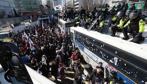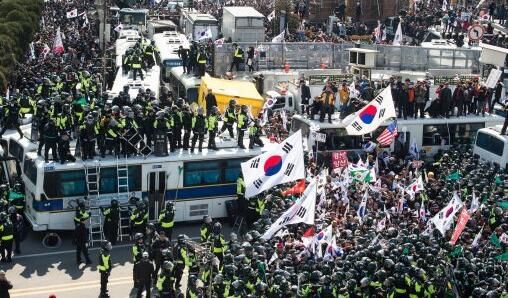 【觀察者網綜合】據央視新聞報道,在韓國憲法法院宣布通過對前總統樸槿惠的彈劾后,大量樸槿惠的支持者在憲法法院門外集會表達對判決的不滿。一些示威者試圖沖破警方設置在法院門外的防線,與警方發生沖突。據央視記者現場觀察,有民眾在沖突中受傷。