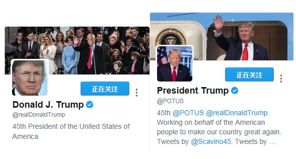 特朗普的兩個推特賬號