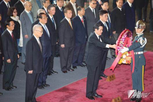 馬英九、吳敦義、郝龍斌等一行人入內向孫中山先生遺像行禮,吳敦義與郝龍斌分別站在馬的兩側后方,緊緊跟隨馬英九。