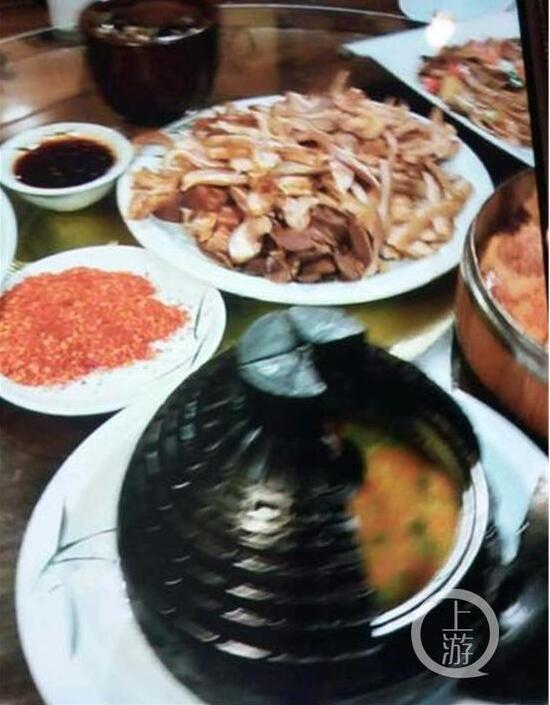 同學之間多年不見,相聊甚歡。沒多久,餐館服務員就開始上菜了。“地雷菜”果然名副其實,在餐盤里的就是一顆“地雷”。服務員當時并告訴王女士,“地雷菜”只需點燃引線即可。