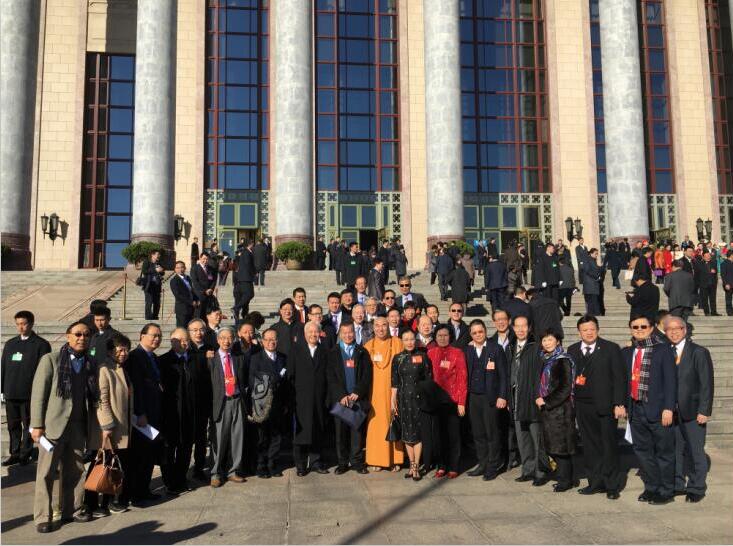 全国政协十二届五次会议昨闭幕,部分港区政协委员在人民大会堂外合影。记者木子摄