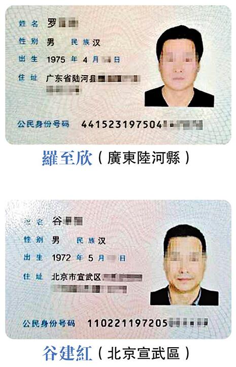 谷卓恒几乎在同一时间拥有三张与军方有关的证件,但在其往来港澳的通行证上,办的却是商务签注,使其身份愈加扑朔迷离。至于谷卓恒的两张身份证,不仅资料完全不同,证件资料也有颇大的差异。在“谷某某”的证件上,出生年月为“1972年5月”,住址则在“北京市宣武区,另一张“罗某某”的证件上,出生年月则为“1975年4月”,住址为“广东省陆河县”,其照片亦比“谷某某”的要显得年轻。