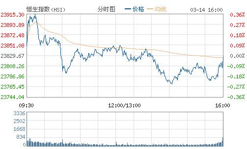 隔夜美股三大指數個別發展,市場焦點放在本周二開始舉行的美國聯邦公開市場委員會(FOMC)為期兩天的貨幣政策會議上。上周五公布的美國非農就業報告表現強勁,加深了投資者對聯儲局將會加息的預期。除了美聯儲之外,英國央行、日本央行以及土耳其央行均將在本周召開會議。恒生指數今早高開0.17%,開盤后漲幅擴大,最高漲近百點,重返23900點之上,高見23918點,其后漲幅收窄,10時30分后由升轉跌,其后翻紅,午后走勢向下,再次由升轉跌,跌穿上午低位,低見23768點。截至收盤,恒生指數報23827.95點,跌0.01%;國企指數報10315.23點,漲0.55%;紅籌指數報3924.17點,漲0.39%。大市成交額720.07億。