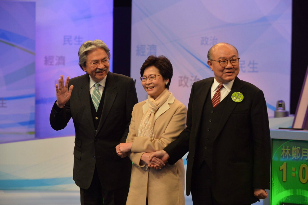 三名特首候選人參加「2017行政長官選舉辯論」。在經濟議題上,三人圍繞樓市、稅制展開辯論,其中曾俊華被質疑在九年的財政司職位上沒有解決問題,並質疑為何政府累積巨額盈餘而不幫助中小企。