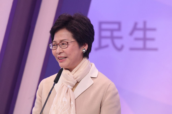 林鄭月娥則表示,香港人要團結,有希望,而這一切要用同行開始,她表示,自己的競選口號「同行」,不單是個口號,更是一個行動的承諾。她表示,指自己想為香港做事,並非因為「好打得」,而是「好捱得、好做得、好忍得」。