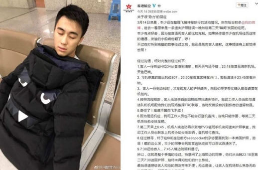 猷君看到「本少」的回應後在微博回覆對方,「真的很遺憾。有如此的強勢回應,對乘客的遭遇又怎麼可能走心?對於別人的不幸,還可以有這樣的工夫去調侃,也難怪會有夜宿機場等一夜這樣的效率。講真,認不認識何猷君不重要,無差別的服務乘客,比甚麼都重要。香港航空做事做人的態度,了然於紙上。無需道歉,我向你們道歉。不該使用你們的服務。」
