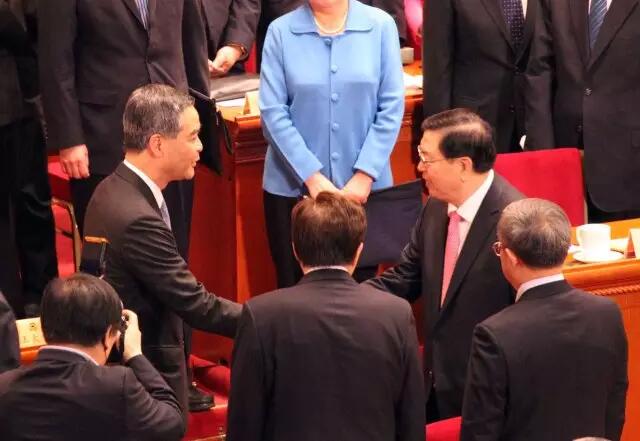 張德江與梁振英握手