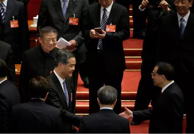 李克強與梁振英握手