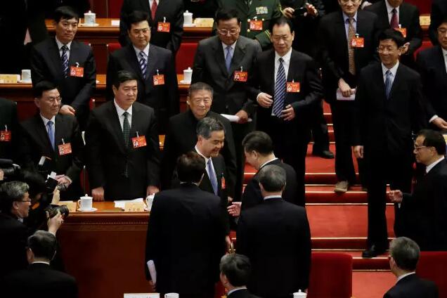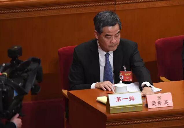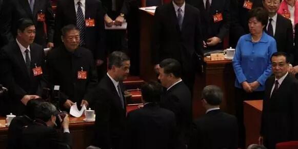 據香港商報報道,13日的梁振英夠威,堪稱“威”震全場,幾乎成為會場主角。全國政協大會上,剛當選全國政協副主席的行政長官梁振英,被安排坐上主席臺第一排通道位置。
