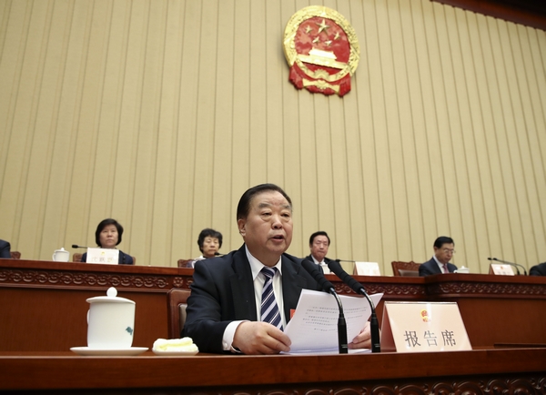 3月14日上午,十二届全国人大五次会议主席团在北京人民大会堂举行第三次会议。全国人大法律委员会主任委员乔晓阳作全国人大法律委员会关于民法总则草案更改意见的报告。