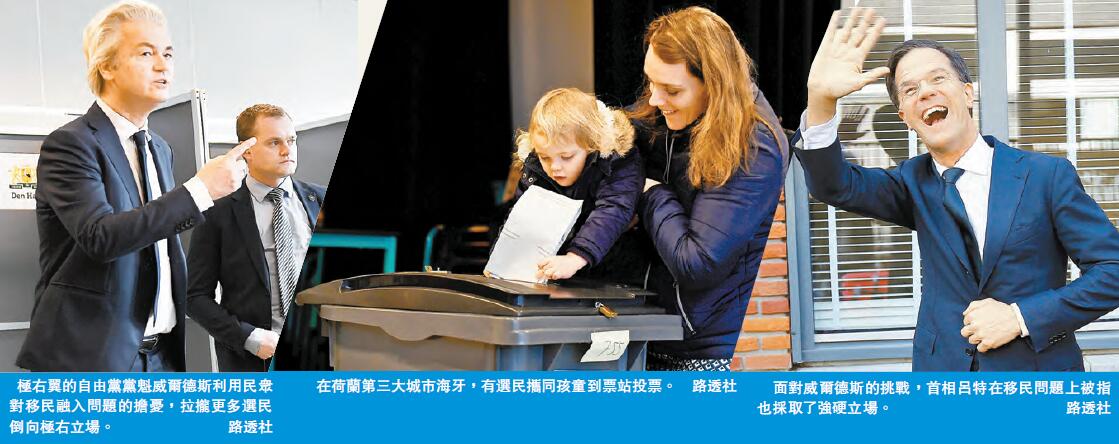 【香港商報网訊】荷蘭議會二院(眾議院)選舉於當地時間15日早上舉行,就此拉開「歐洲大選年」的序幕。這場選舉更被視為歐洲政治變化的「風向標」,反伊斯蘭、反移民、反歐盟的極右翼自由黨會否成為荷蘭第一大黨,備受關注,也牽動著歐盟敏感神經。分析指出,主張脫歐的極右翼勢力在荷蘭選戰中的抬頭之勢如無法得以遏制,極可能影響日后法國、德國等國重要大選的形勢,繼而令歐洲一體化承受更大壓力。