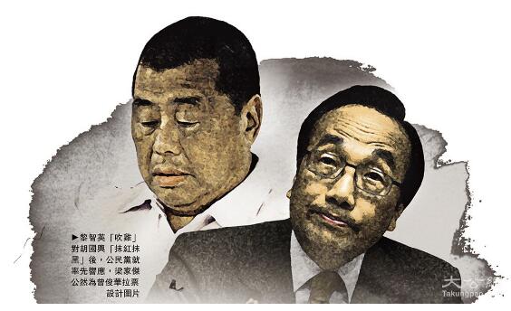 图:黎智英“吹鸡”对胡国兴“抹红抹黑”后,公民党就率先响应,梁家杰公然为曾俊华拉票/设计图片