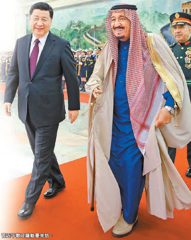 【香港商報网訊】國家主席習近平在人民大會堂舉行儀式,歡迎沙特阿拉伯國王薩勒曼到訪,雙方會談一致同意保持雙邊關系發展,促進各領域務實合作,推動全面戰略夥伴關系不斷取得新成果。習近平指出,中方歡迎沙特成為共建「一帶一路」的全球合作夥伴,提議兩國共同打造能源領域一體化合作格局,深化通信、航天等領域合作。會后習近平與薩勒曼見證兩國代表簽署經貿、能源、產能及科技等領域的雙邊合作文件,項目價值總額650億美元。