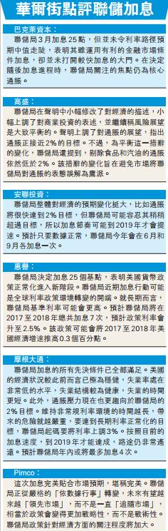 聯儲局當天結束貨幣政策會議後發表聲明說,2月份以來的經濟指標顯示美國就業市場繼續走強,家庭消費繼續溫和上漲,企業固定投資有所企穩,整體經濟活動保持溫和擴張步伐。聲明說,近幾個季度以來美國通脹水平逐步回升,接近聯儲局2%的長期目標,但扣除波動較大的能源和食品價格,通脹率仍低於目標值。