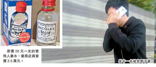 兩被告梁家葆(21歲)和鄧子豪(23歲),被控於前年11月29日在旺角西洋菜南街龍興中西藥坊欺詐女事主張秀基(63歲),訛稱法國雙飛人藥水每支售價是2.5萬港元。張是家庭主婦,長居深圳,每年會來港3、4次購買嬰兒紙尿片、奶粉和藥油等。