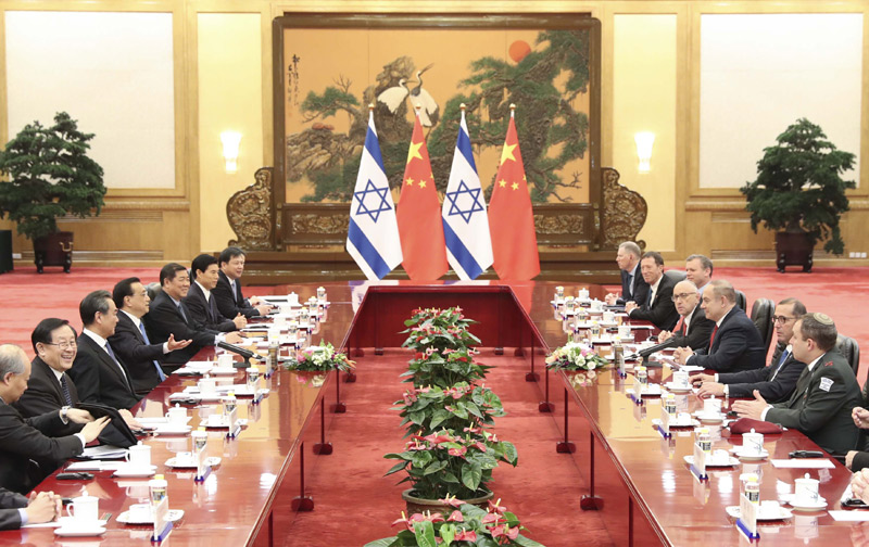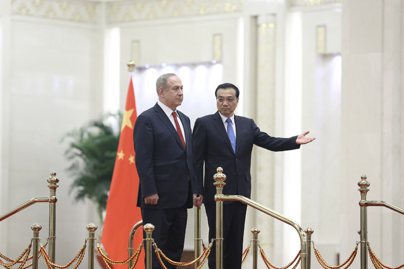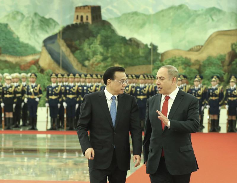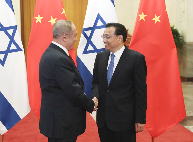 国务院总理李克强3月20日下午在人民大会堂北大厅举行仪式,欢迎以色列总理内塔尼亚胡对华进行正式访问。这是全国“两会”后,李克强接待的首位外国政府首脑。双方一致同意发展创新全面伙伴关系,加快中以自贸区谈判,加强在双边和国际地区事务中的合作与沟通,共同致力于维护和平与稳定,促进发展和繁荣。