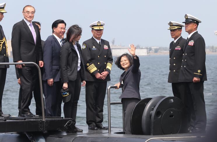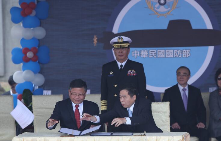 昨天,蔡英文到高雄左營水星碼頭,參加潛艇自造設計啟動及合作備忘錄簽署儀式。台防務部門負責人馮世寬、海軍司令黃曙光、台船董事長鄭文隆以及台灣中山科學研究院院長張冠群,共同完成潛艇自造的啟動命令並簽署合作備忘錄。
