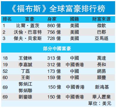 【香港商報網訊】2017年《福布斯》全球富豪排行榜20日晚出爐,在最近一年新上榜的中國億萬富翁人數超過美國,成為全球第一。新上榜的富豪中,內地76人,美國25人。而微軟創辦人比爾蓋茨則繼續以860億美元資產,連續第4年成為全球首富。