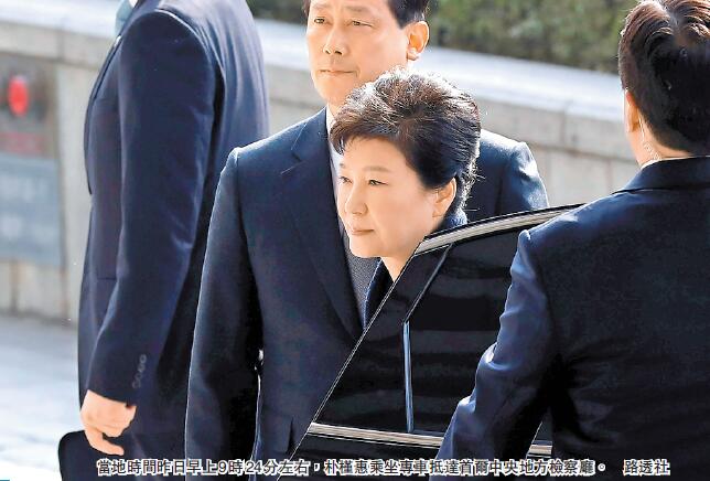 樸槿惠當地時間昨日上午9時15分離開首爾三成洞私宅,前往首爾中央地方檢察廳。9時24分抵達後,樸槿惠通過檢察廳西門進入辦公樓。樸槿惠是第一位在首爾中央地方檢察廳接受調查的前總統。上午9時25分許,樸槿惠以犯罪嫌疑人身份到案,在抵達首爾中央地方檢察廳時迴避記者提問,僅對國民致歉,並指將坦白交代配合調查。之前除接受指定媒體採訪外,樸槿惠都未在公眾場合就事件表態。檢方在上午10時許正式啟動對樸槿惠的訊問。