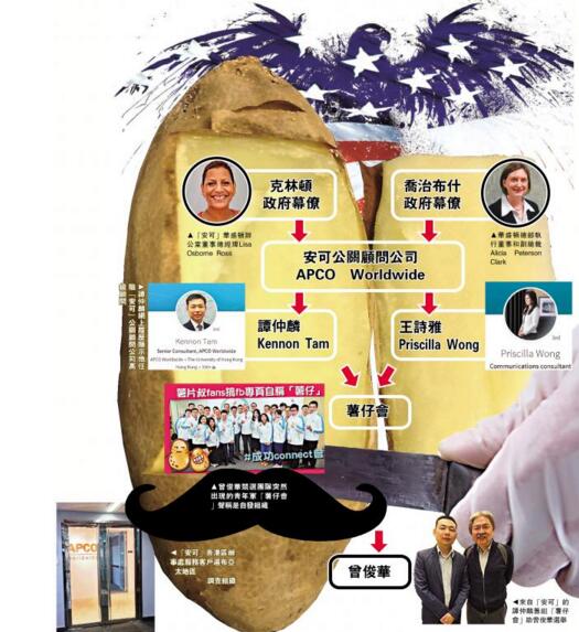 行政長官選舉進入倒數階段,候選人曾俊華的競選團隊突然殺出一班80後青年生力軍「薯仔會」,開宗明義撐曾做特首,「薯仔會」的撐曾活動獲曾的競選辦同意,活動支出列入選舉規例處理。「薯仔會」由約三十名來自各行業的青年組成,聲稱是自發組織,政治中立。但《大公報》發現籌組「薯仔會」的發起人譚仲麟及王詩雅,是來自克林頓政府幕僚及布什政府幕僚組成的公關公司「安可公關顧問公司」。「安可」大中華區主席James McGregor亦與克林頓及美國民主黨金主索羅斯有關聯。事實上,與美國政府關係密切的「安可」於2006年為公民黨前黨魁梁家傑參選特首出謀獻策;今屆行政長官選舉公民黨已明言將全數選委票投曾俊華。