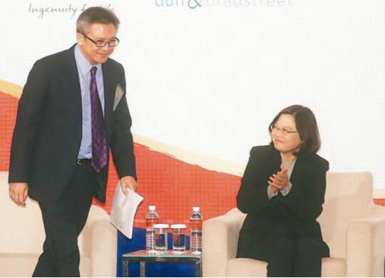 美商會昨日(22日)舉行謝年飯,蔡英文(右)與“美在臺協會處長”梅健華出席。(圖片來源:臺灣《聯合報》)