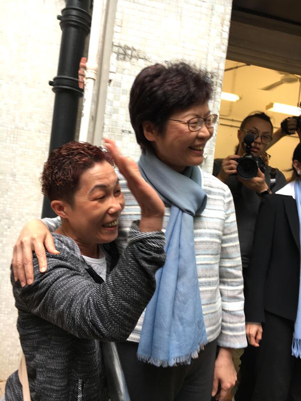 行政長官候選人林鄭月娥昨日到訪天水圍,盡顯親民一面。路透社