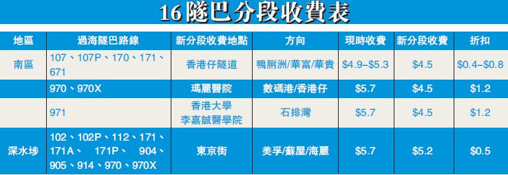 【香港商報網訊】新巴及城巴公布,由明日(周六)起,兩巴將於16條過海隧巴路線推出試驗計劃,在過海後新增分段收費(詳見附表),公司會與運輸署密切留意試驗計劃對營運及交通的影響。