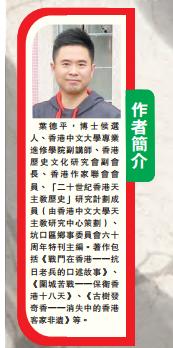 葉德平,博士候選人、香港中文大學專業進修學院副講師、香港歷史文化研究會副會長、香港作家聯會會員、「二十世紀香港天主教歷史」研究計劃成員(由香港中文大學天主教研究中心策劃)、坑口區鄉事委員會60周年特刊主編。著作包括《戰鬥在香港──抗日老兵的口述故事》、《圍城苦戰──保衛香港十八天》、《古樹發奇香──消失中的香港客家非遺》等。