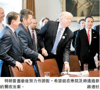 由於遭到最保守的議員和共和黨中間派議員的反對,眾議院共和黨領袖推遲了原定於周四舉行的投票,特朗普在此前一天做了密集的游說工作,但難以讓反對者回心轉意。有共和黨議員說,周五的投票結果將取決於少數共和黨人在最后一刻的決定,包括由眾院共和黨中最保守的議員組成的「眾議院自由黨團」。