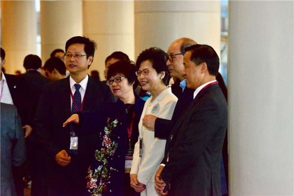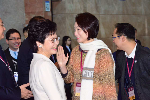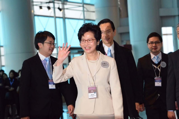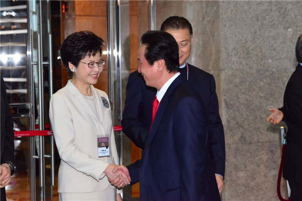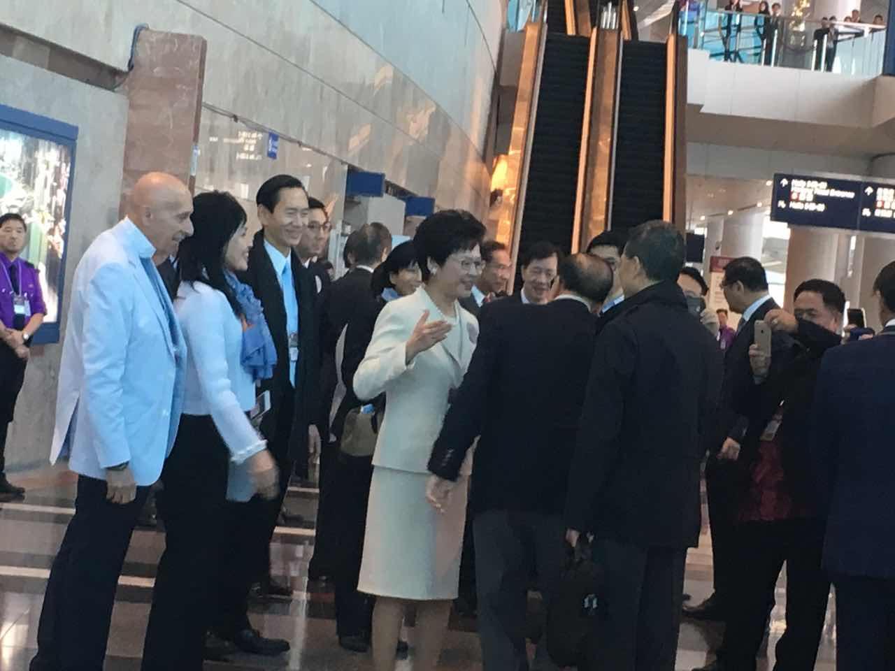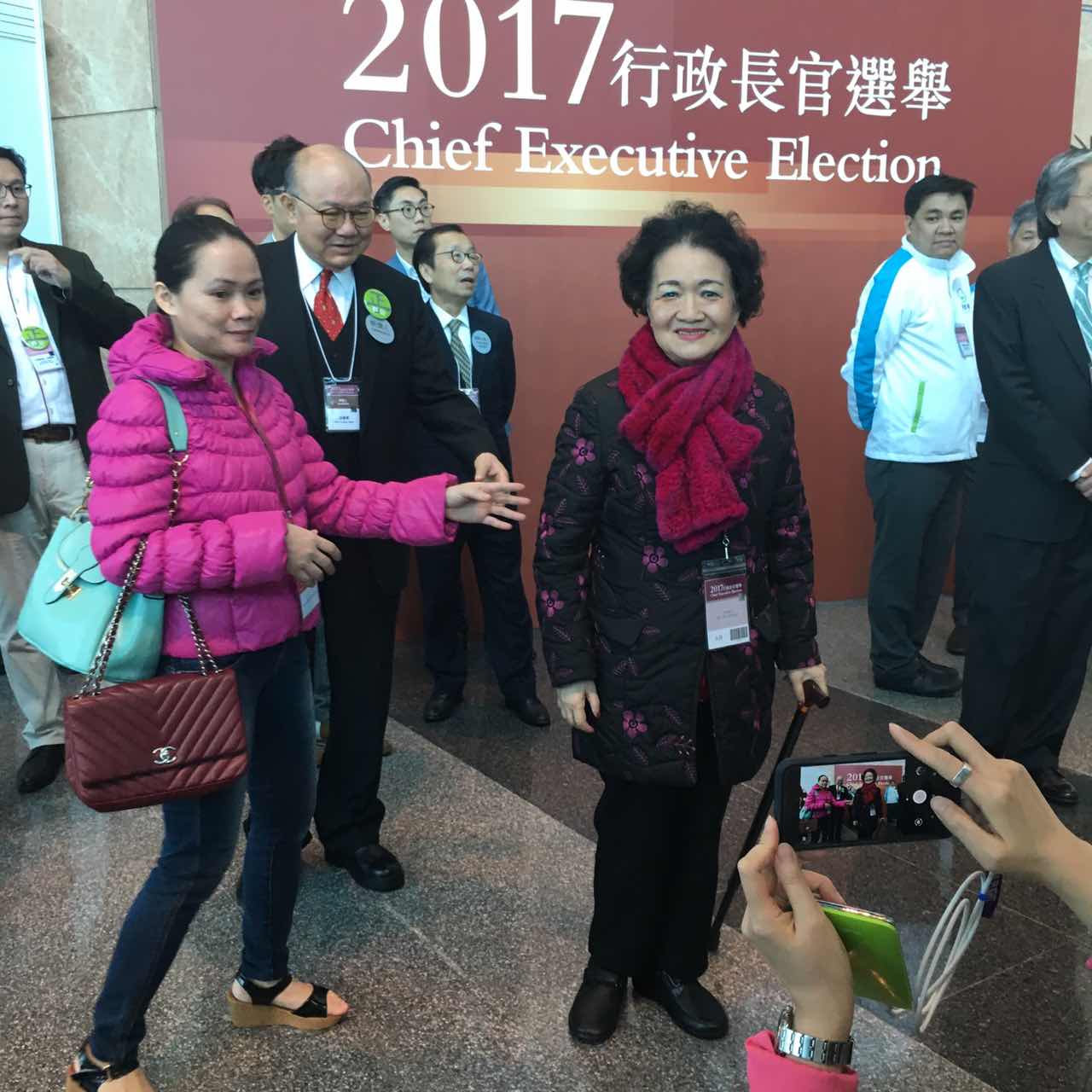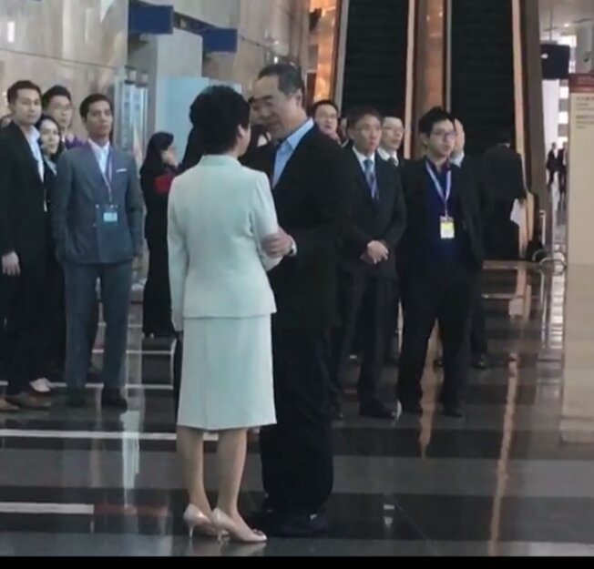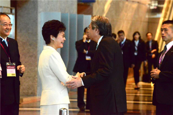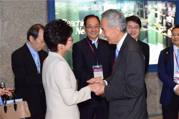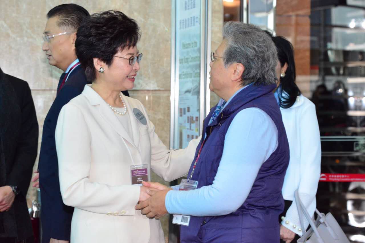 林郑与范徐丽泰握手。