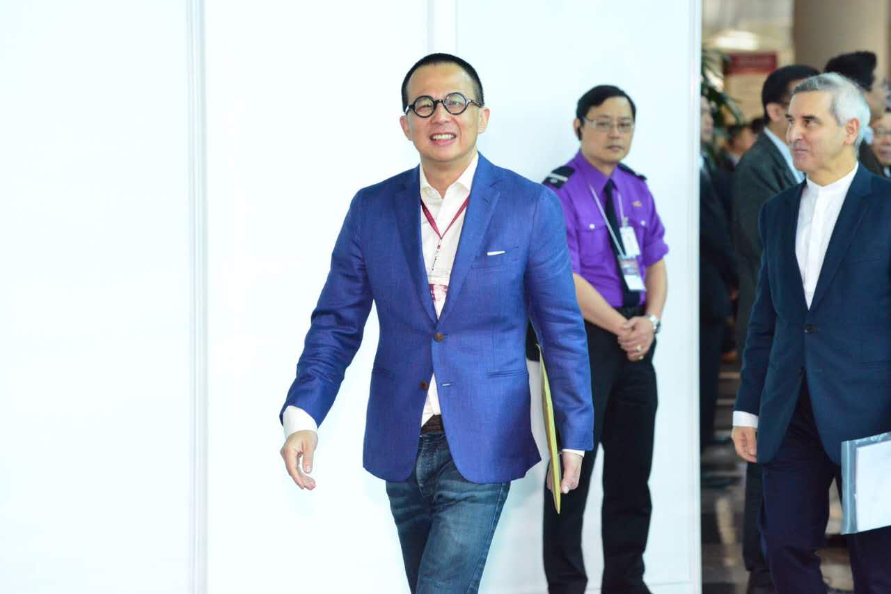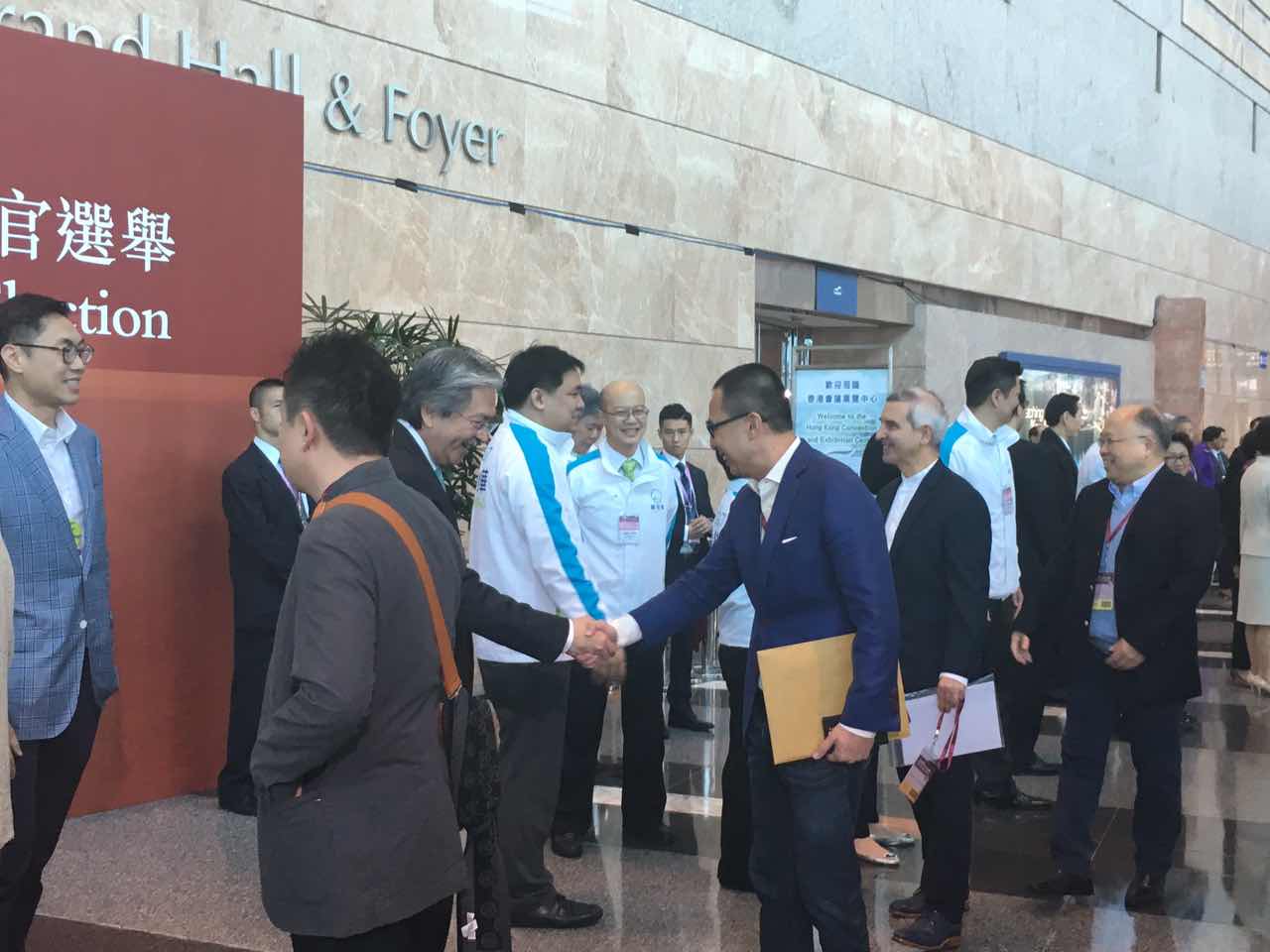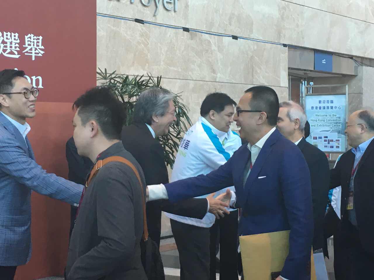 林郑与唐英年握手。
