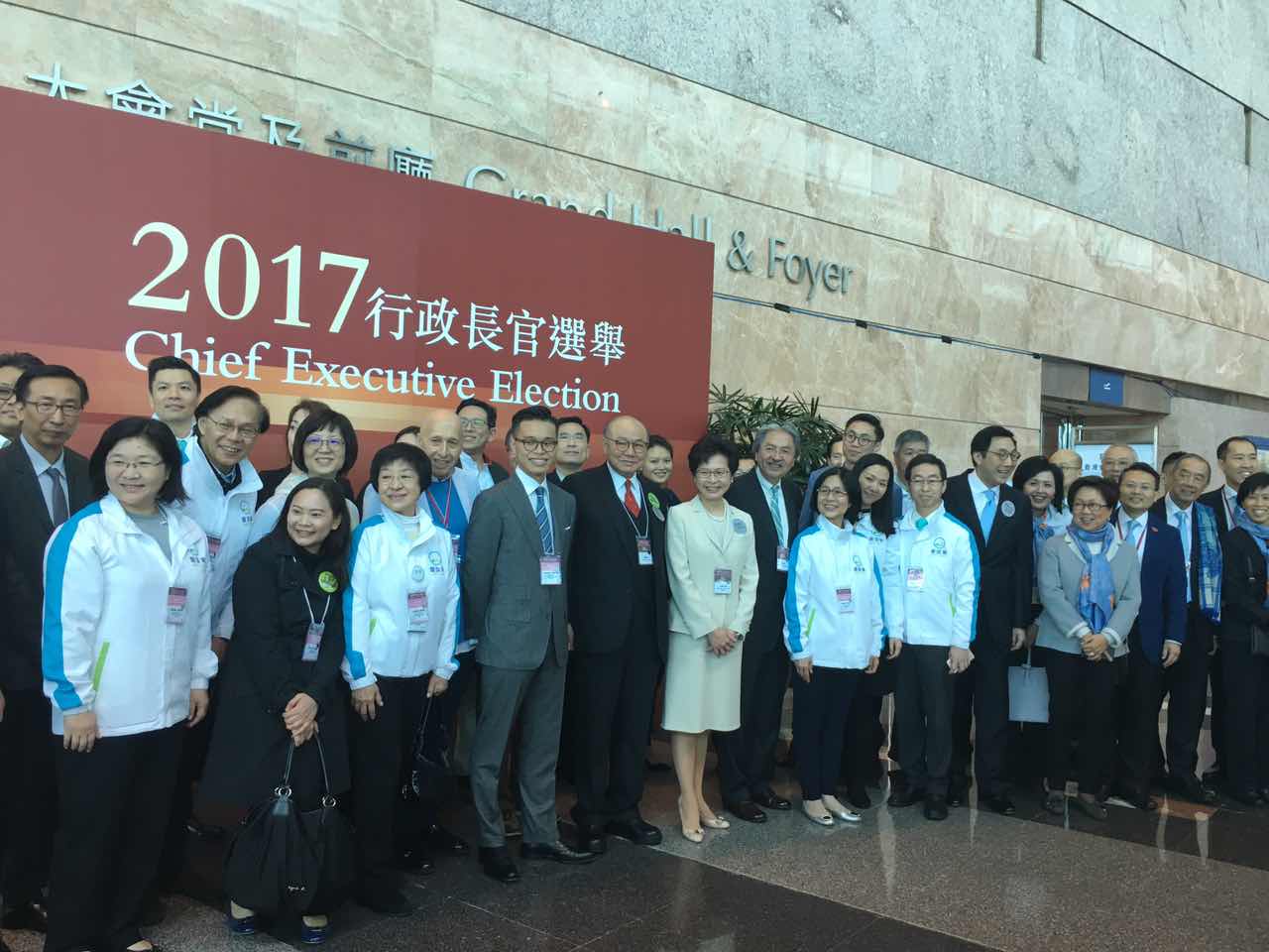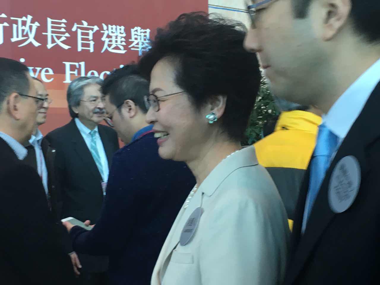 行政長官選舉首輪投票於9時進行,候選人林鄭月娥及曾俊華已到場於主投票站外拉票,倆人亦有握手寒暄,先禮後兵。已到場的選委包括:民建聯譚耀宗、李慧琼、陳克勤、柯創盛、葛珮帆,經民聯張華峰、鄉議局梁福元、港區人大代表羅范椒芬等。