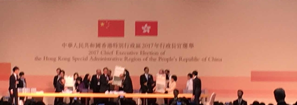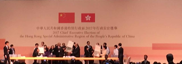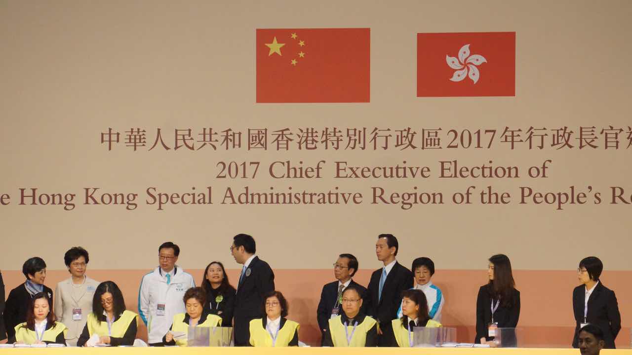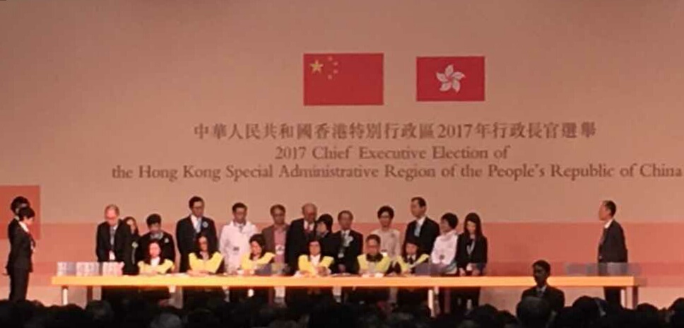 香港特區第五任行政長官選舉今日投票,近1200名選委將在符合資格的候選人曾俊華(1號)、林鄭月娥(2號)、胡國興(3號)中進行選擇。