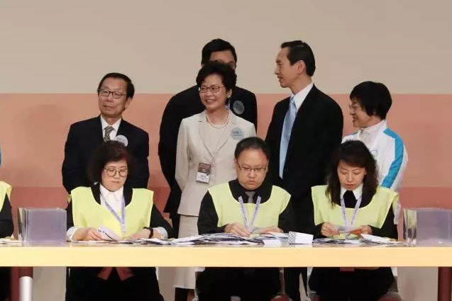 据大公文匯全媒體記者 李俊報道:香港特區第五屆行政長官選舉投票11時順利結束,林鄭月娥以777票、接近七成的得票率擊敗曾俊華、胡國興,即將成為香港回歸以來的首位「女特首」。