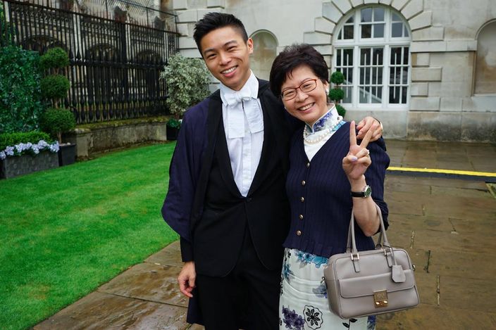 正在英國留學的幼子林約希,一直沒有回港為媽媽站台造勢。不過在投票日前夕,林鄭月娥在FB張貼約希的訊息,約希為媽媽打氣,抱歉未能回港陪伴她經歷這個重要時刻,祝願媽媽一切順利。