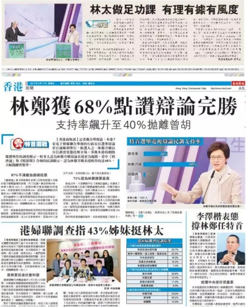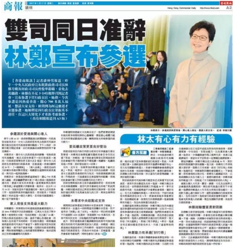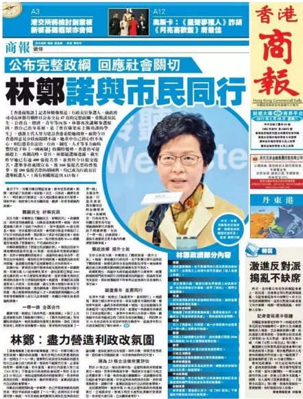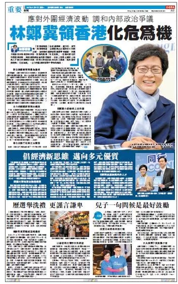 今天,香港举行特区行政长官选举,最终,林郑获得777票,确定成为候任特首。从林太2017年1月12日辞去政务司司长职务起,作为媒体人,我们高度关注她的竞选活动,并全力支持他的竞选主张。两个多月来,我们用眼睛、用语言、用版面、用行动见证了香港新特首的诞生,见证了林郑1.0的款款走来……