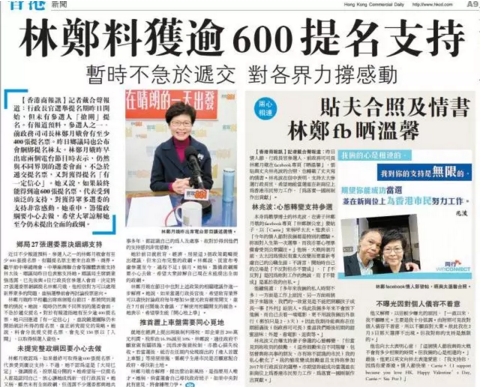 当日,林郑夫君表态力撑太太参选。