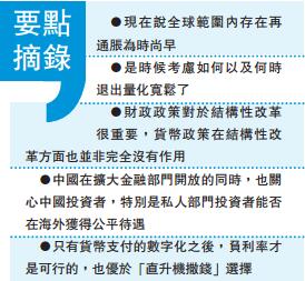周小川指,不要認為量化寬鬆政策能治好每個國家的不同疾病,會有後遺症,每個貨幣政策都有,要選擇正確的貨幣政策工具。