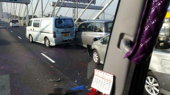 據報車禍涉及2輛私家車及3輛輕型貨車,涉事車輛分佈停在中、快線上,現場交通極為擠塞。消防處接報後派出兩輛救護車到場救援,初步得悉一名私家車女乘客受傷,正由救護員治理及送院。