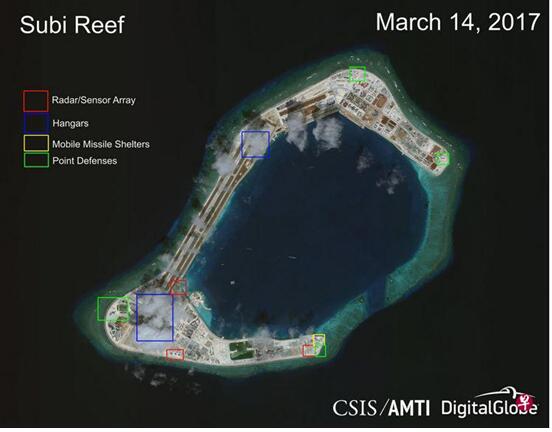 該組織公布多張3月衛星照片稱,中國在南沙群島永暑礁、渚碧礁和美濟礁上建成航海、航空、雷達和防御設施。其負責人波林說,從照片中可以看到永暑礁和渚碧礁有新的雷達天線陣,“所以預計很快將部署”。