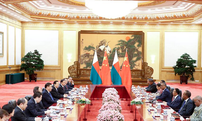 3月27日,中國國家主席習近平在人民大會堂同馬達加斯加總統埃里舉行會談。中新社記者 杜洋 攝