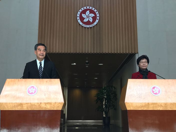 林鄭月娥(右)日前與梁振英會面(資料圖片)