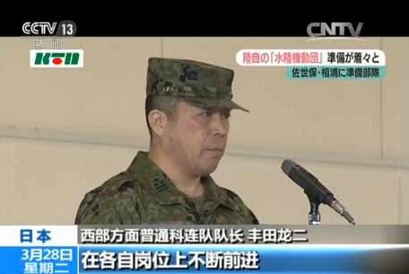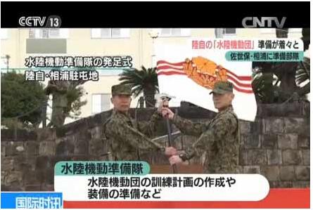 日本宣稱從3月27日開始,其自衛隊的兩棲奪島作戰能力進入了一個新階段。27日,先后有兩支為奪島準備的新部隊成立,這兩支部隊是日本自衛隊水陸機動團的重要組成部分。日媒稱,水陸機動團是日本依照美海軍陸戰隊建立,此舉意味著該部隊“正式成軍進入最后階段”。日本媒體稱,組建水陸機動團正是為了對抗中國,確保釣魚島實際控制權。